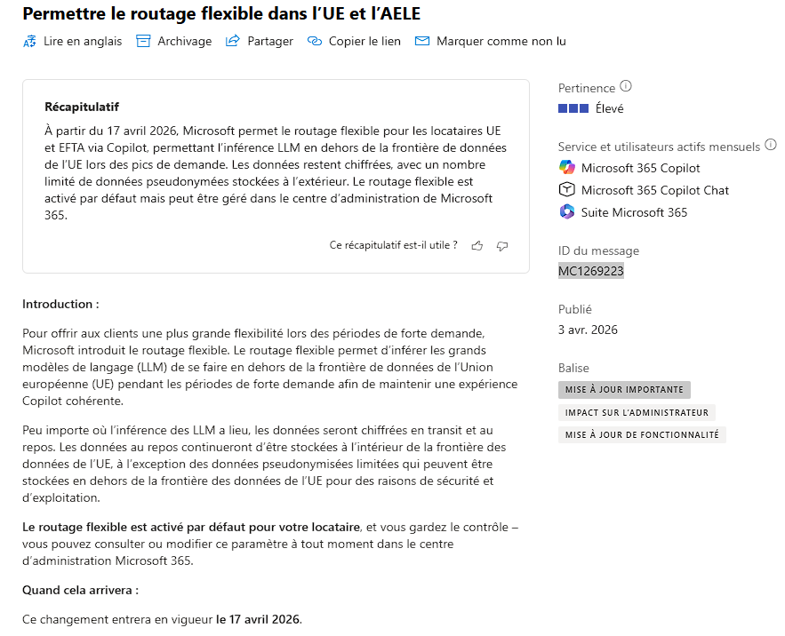 Après l’intégration d’Anthropic dans les applications Microsoft 365 en opt-out, Microsoft annonce désormais l’activation d’un nouveau paramètre qui peut, par défaut, faire transiter certaines données en dehors de l’Europe : le routage flexible.